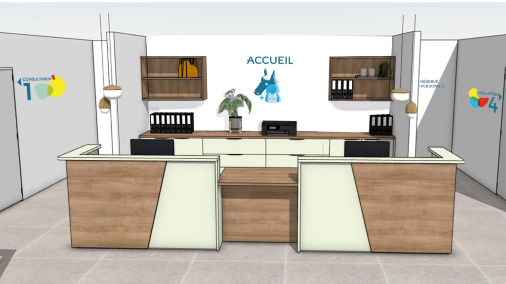 La mission principale consistait a penser et concevoir la signalétique intérieure et extérieure des nouveaux locaux des vétérinaires de Guidel.